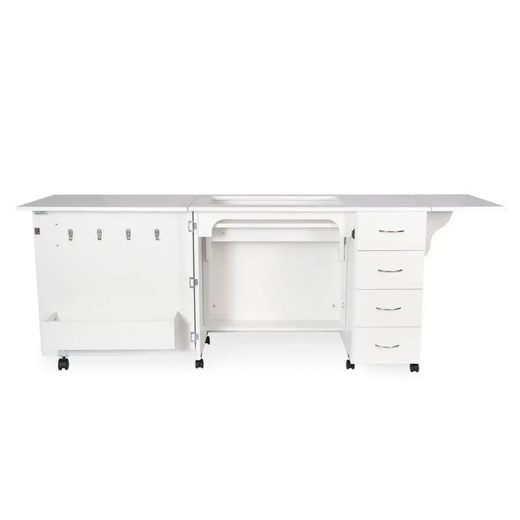 - 4 large drawers on cabinet’s right side to store notions and accessories